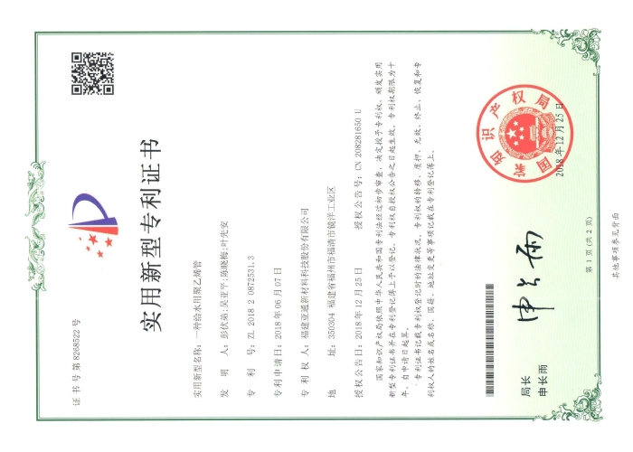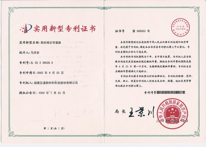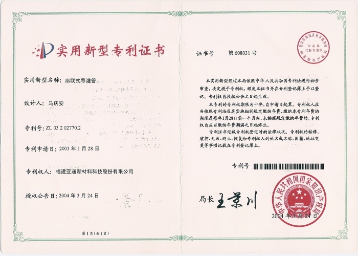 二十多年來,研發(fā)中心完成科技成果轉(zhuǎn)化百余項(xiàng),涉及建筑、高速公路、水利、通信、電力、農(nóng)業(yè)排灌、城市給水、排水、排污系統(tǒng)、現(xiàn)代園藝等領(lǐng)域。完成國家、省級、市級項(xiàng)目20多項(xiàng);擁有國家授權(quán)公開專利110多項(xiàng);主持和參與制修訂國家、行業(yè)、地方標(biāo)準(zhǔn)90項(xiàng),10多項(xiàng)科技成果經(jīng)過省部級新產(chǎn)品鑒定,先后獲得省級企業(yè)技術(shù)中心、高新技術(shù)企業(yè)、中國塑料管道工程技術(shù)研發(fā)中心等榮譽(yù)稱號。