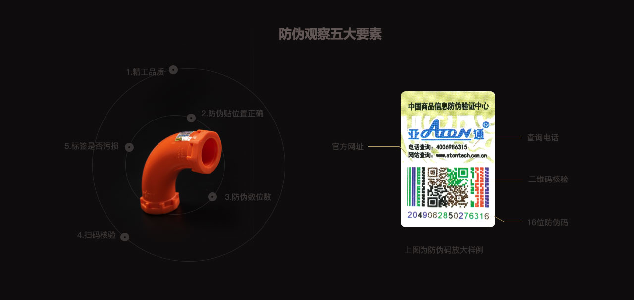1、亞通官方微信公眾號查詢:請用手機(jī)微信搜索“亞通家裝管道”微信公眾號,進(jìn)入防偽查詢,輸入16位防偽編碼即可驗證真?zhèn)巍?br>