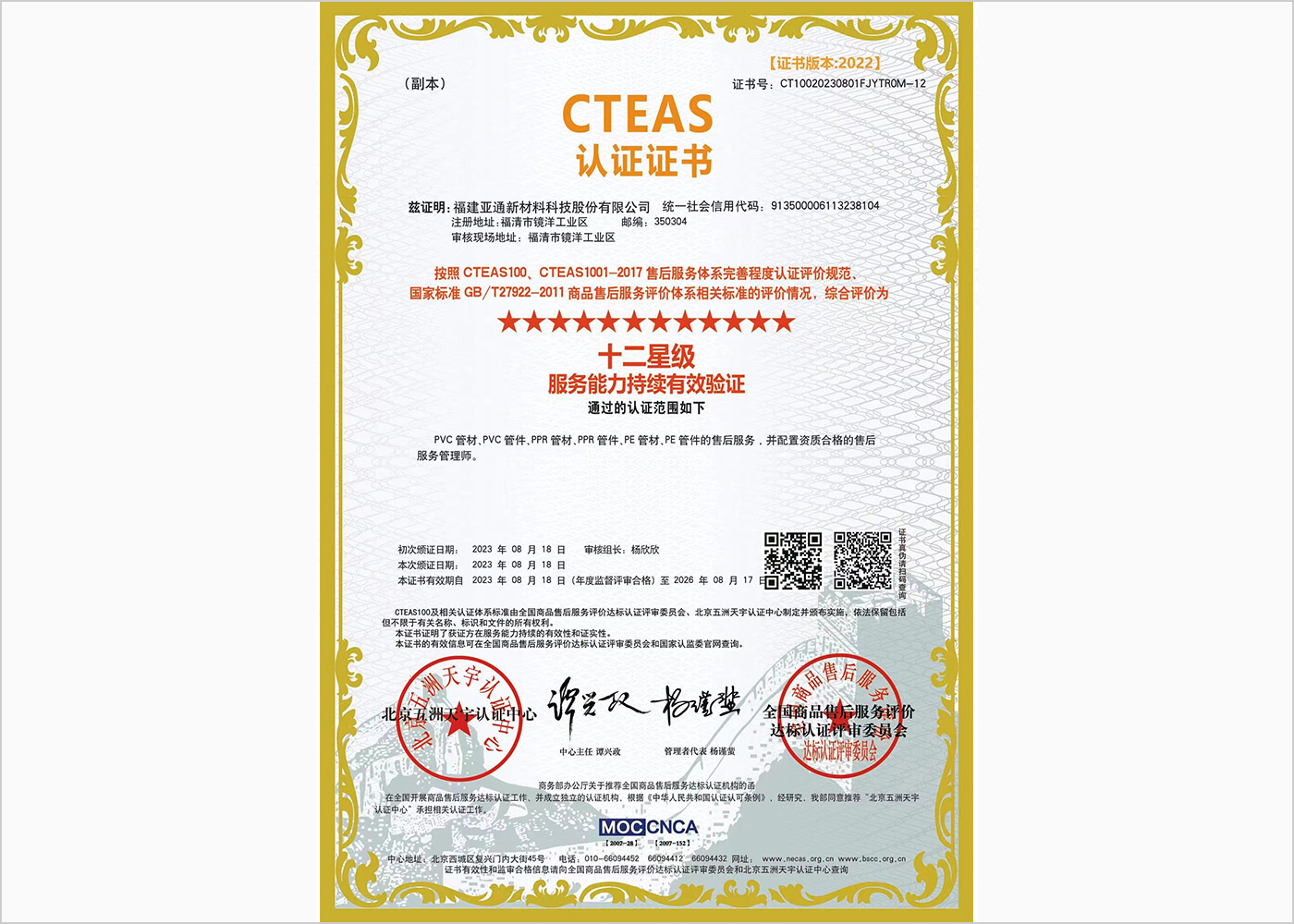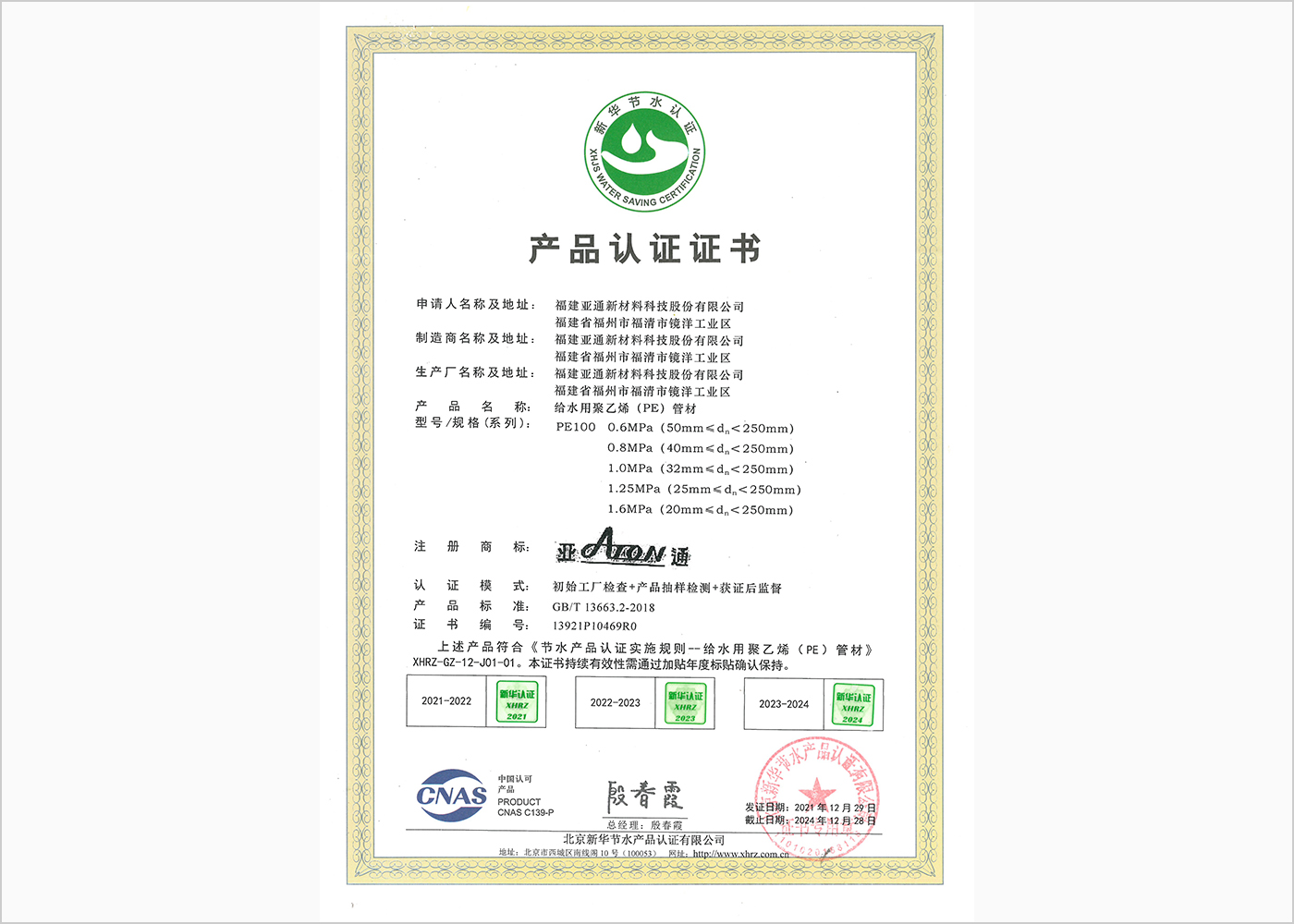 給水管系列中國環(huán)境認(rèn)證產(chǎn)品證書