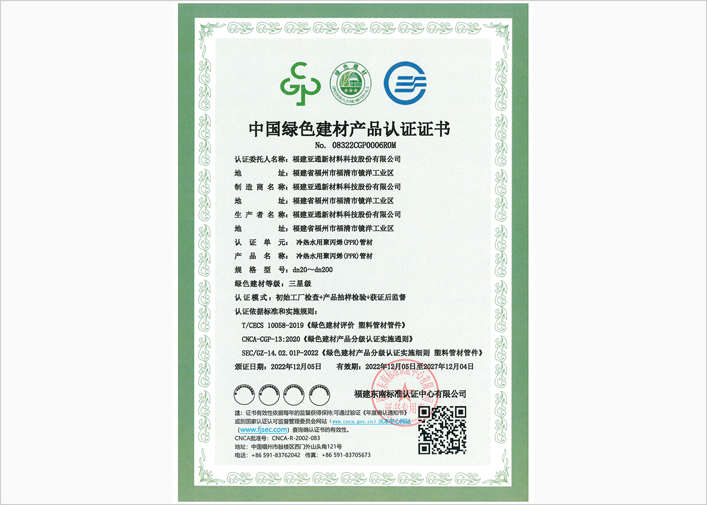 中國綠色建材產(chǎn)品認(rèn)證證書